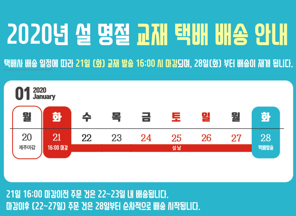 2020 설 명절 교재 택배 배송 안내